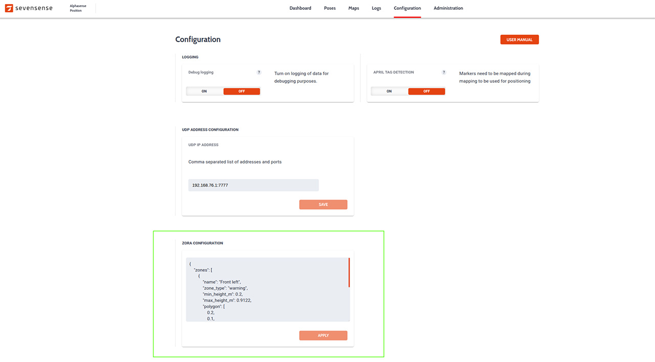 ・ZORA設定(開発中オプション):ステレオビジョン視野内に定義したゾーンの占有情報を出力。