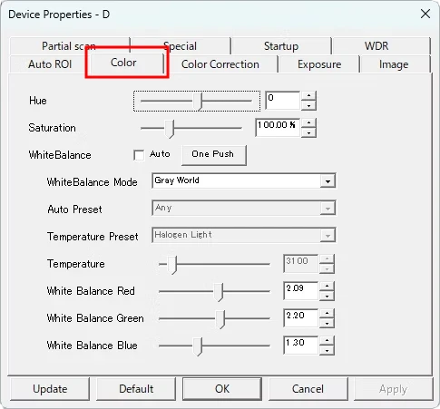 //white balance Mode 0:Gray World, 1:temperature
