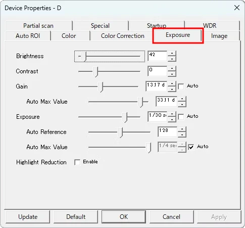 [Exposure]タブ