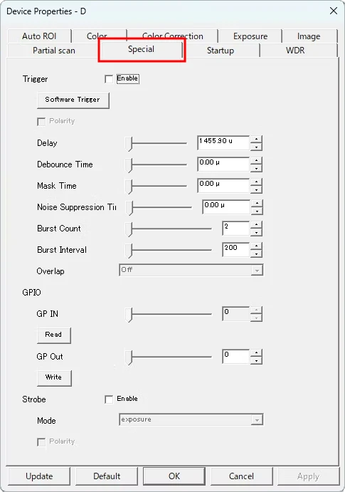 // partial scan Y方向のオフセット