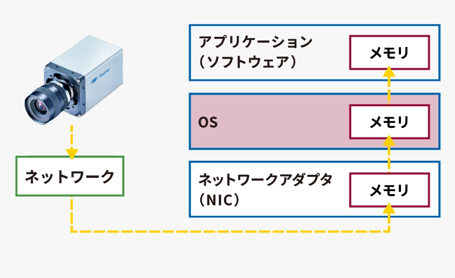 - 1.ネットワークアダプタ(NIC)がカメラからデータ受信