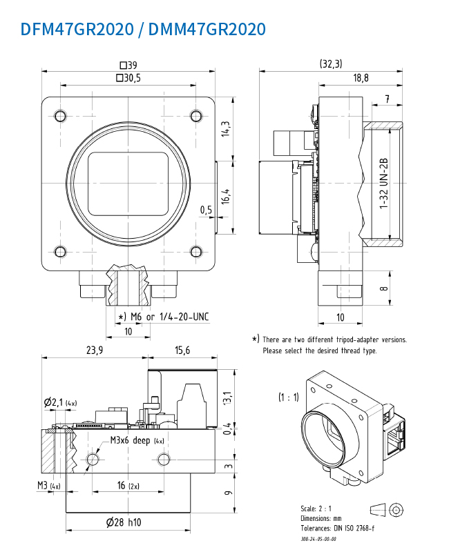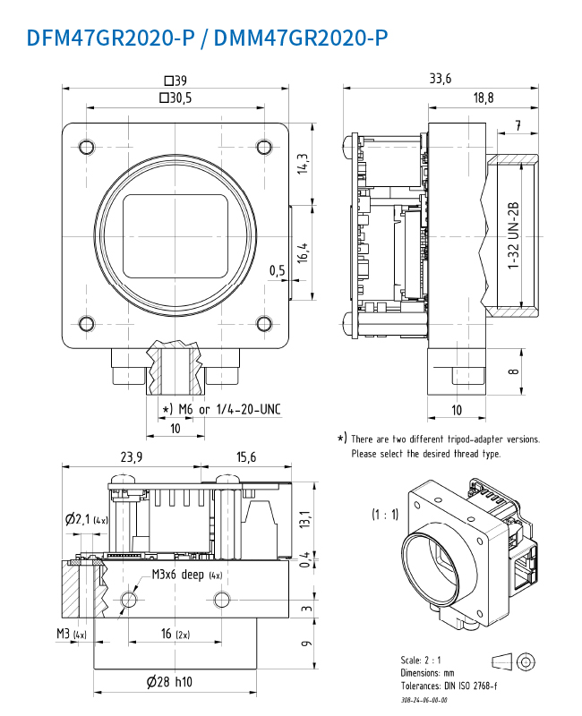 レンズマウント | DFM47GR2020-ML / DMM47GR2020-ML / DFM47GR2020-MLP / DMM47GR2020-MLP:M12x0.5レンズマウント DFM47GR2020 / DMM47GR2020 / DFM47GR2020-P / DMM47GR2020-P:Cレンズマウント |